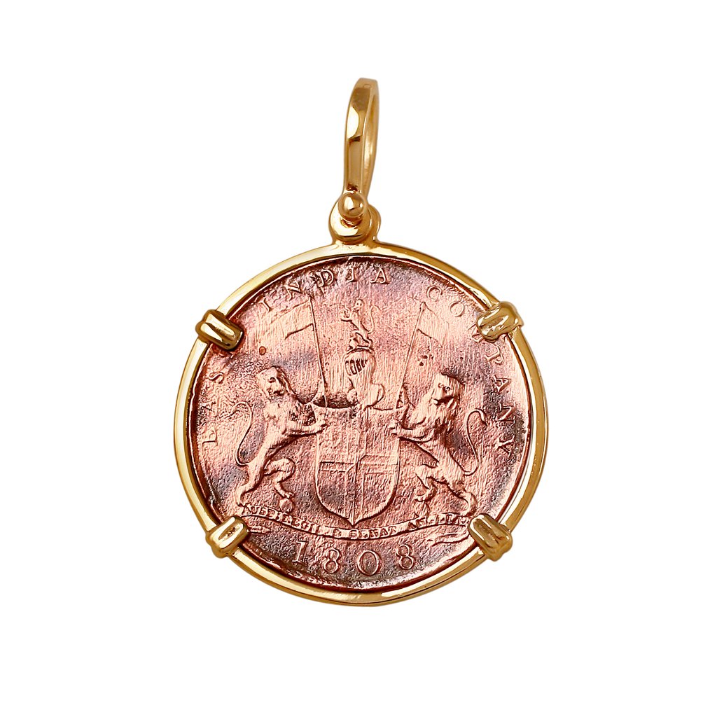 Admiral Gardener Pendant features an authentic Copper 809 10 Cash Coin Mounted in choice of 14k Yellow Gold Frame or Sterling Silver Frame. Certificate of Authenticity included.